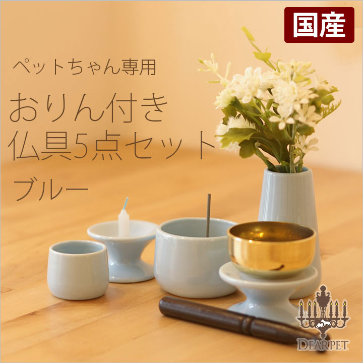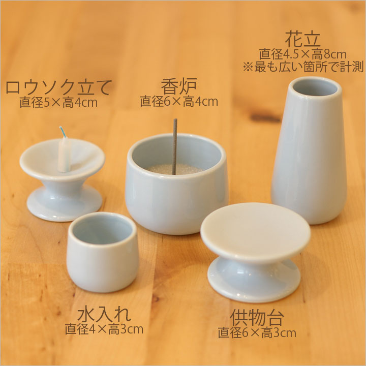 供物皿、水入れ、花立、ロウソク立て、香炉をセットにしました。