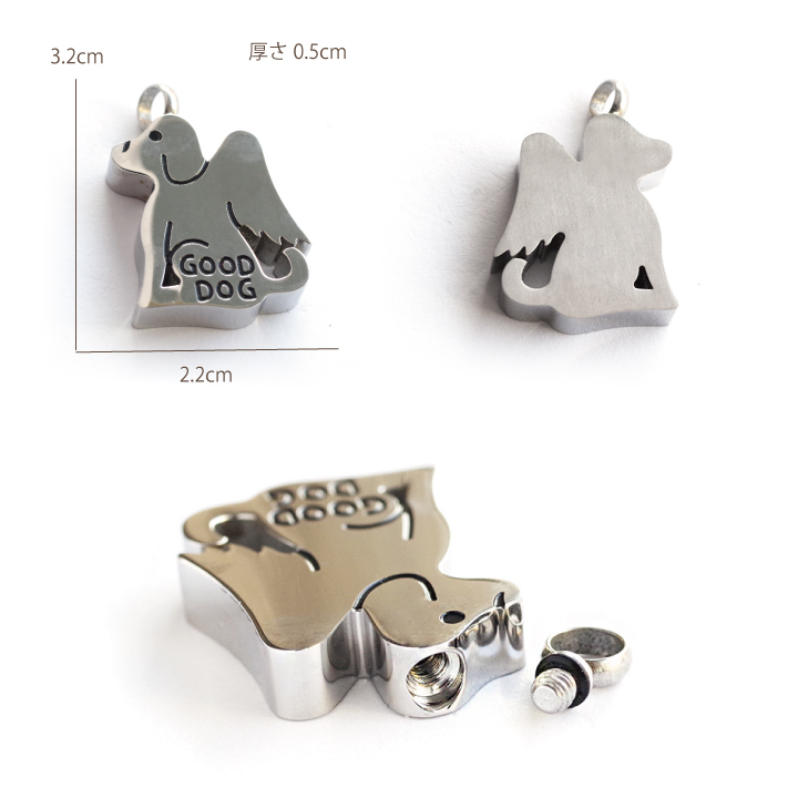 ペットちゃんのお骨を納めるオールステンレスの遺骨ペンダント