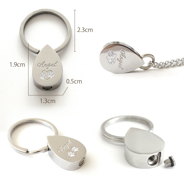ペットちゃんのお骨を納めるオールステンレスの遺骨ペンダント