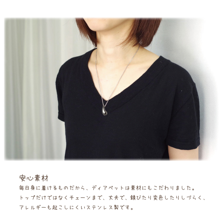 ペンダントはチェーンもステンレス製ですので、アレルギーを起こしにくい素材になっています。
