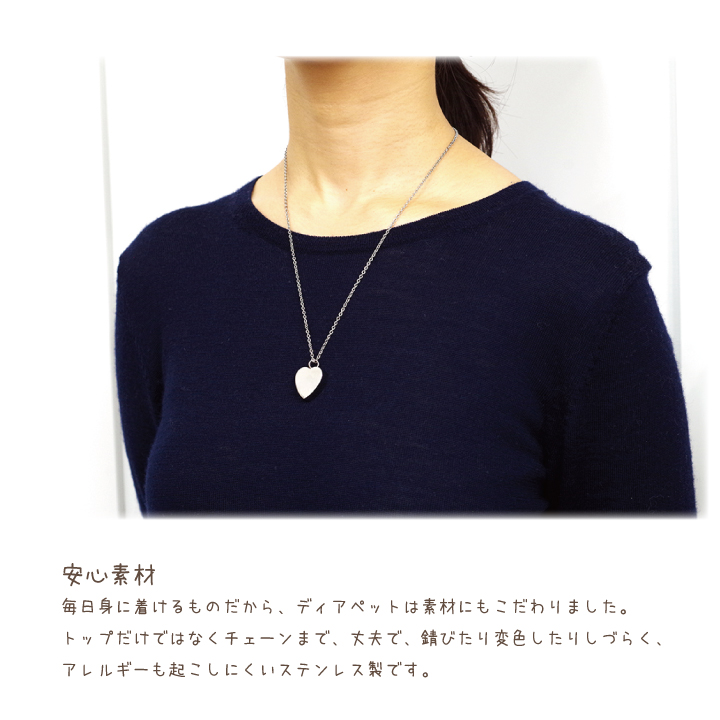 ペンダントはチェーンもステンレス製ですので、アレルギーを起こしにくい素材になっています。