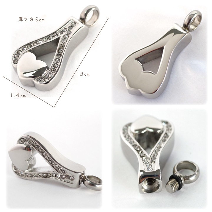ペットちゃんのお骨を納めるオールステンレスの遺骨ペンダント