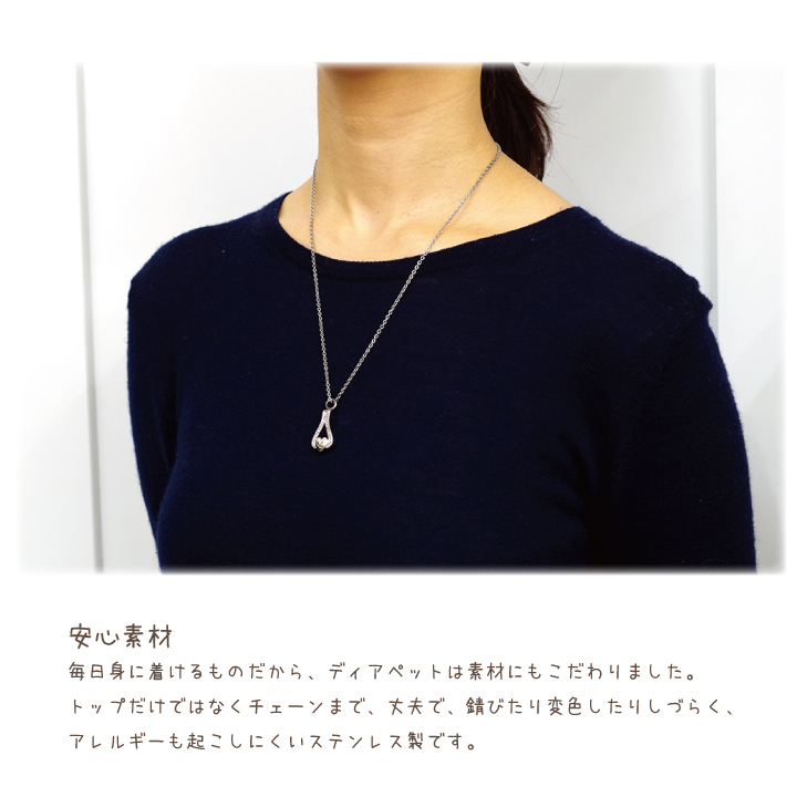 ペンダントはチェーンもステンレス製ですので、アレルギーを起こしにくい素材になっています。