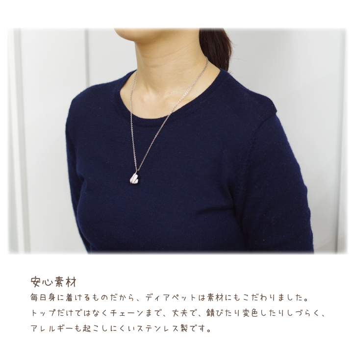 ペンダントはチェーンもステンレス製ですので、アレルギーを起こしにくい素材になっています。
