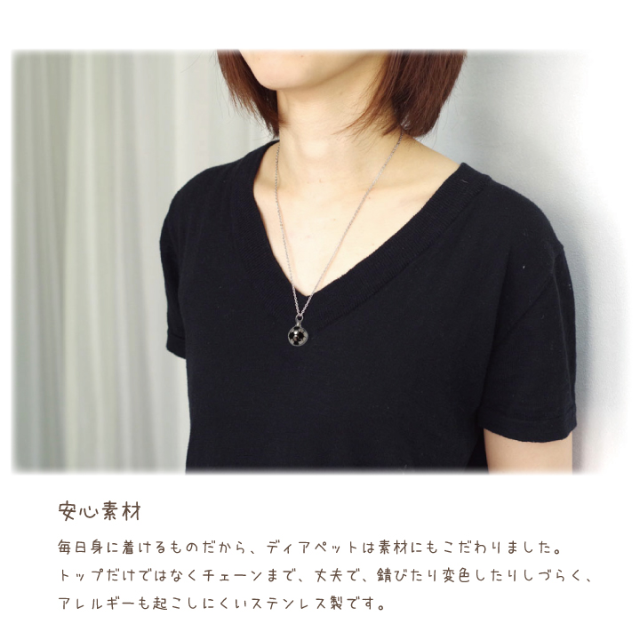 ペンダントはチェーンもステンレス製ですので、アレルギーを起こしにくい素材になっています。