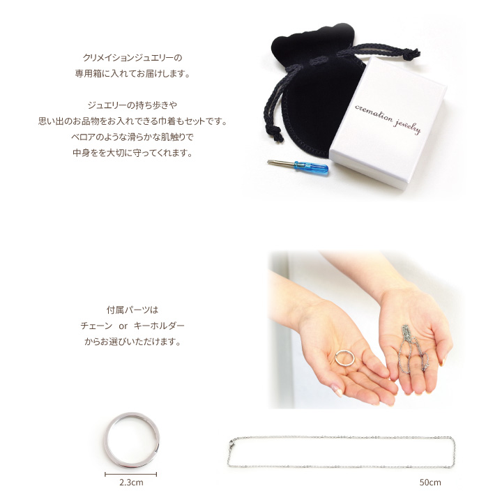 ペンダントかキーホルダーか選べますので、より身近に感じられる方をお選びいただけます。