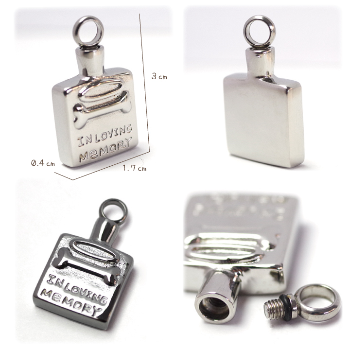 ペットちゃんのお骨を納めるオールステンレスの遺骨ペンダント