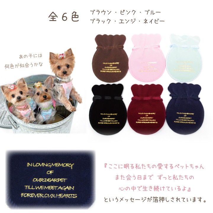 ペットちゃんのご遺骨、遺毛、歯、ひげなどの小さな遺物を納めて、ペット供養にお役立ていただけます。