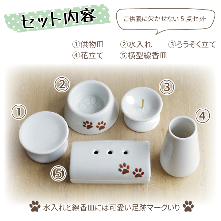 横型香皿と足あとのお皿が可愛い仏具セット。